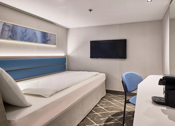 Kajuty vnitřní (též varianty single či rodinná kajuta), kajuty s oknem (též varianty single či rodinná kajuta), kajuty s balkonem (též variantsingle či rodinná kajuta), junior suite, suite.
