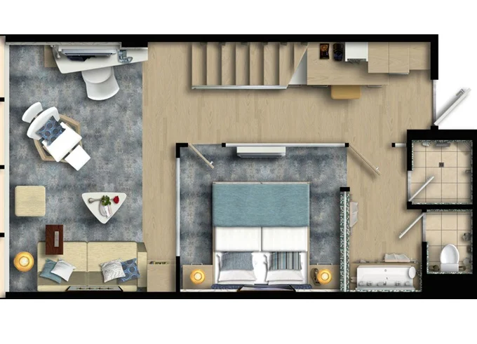 | SUHO - Himmel & Meer Suite 40 m² + prekrytá terasa 29 m² v patře se stolem, lehátky a s houpací sítí. Ložnice s obývací částí a jedálenským kútom. 15. paluba. Max 4 osoby. Výhody Suite. | 410 680 Kč 410 680 Kč za osobu | ||