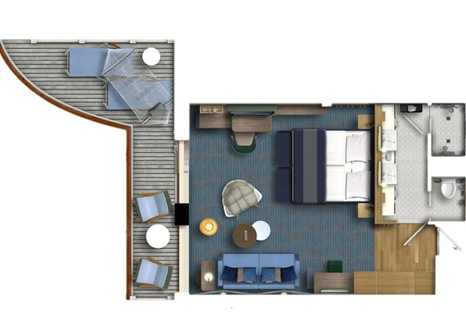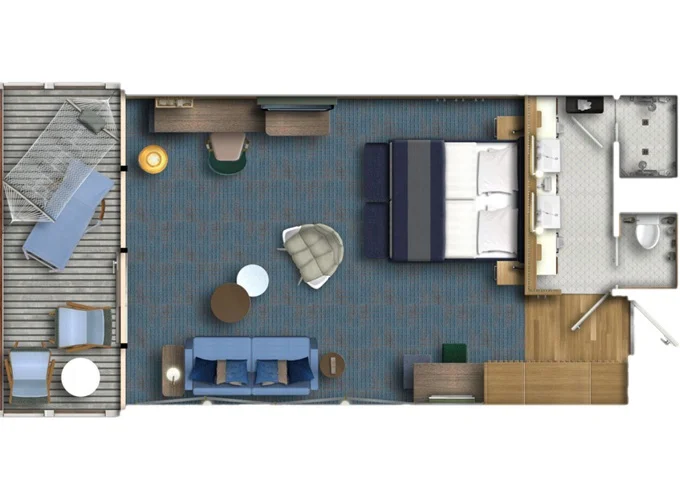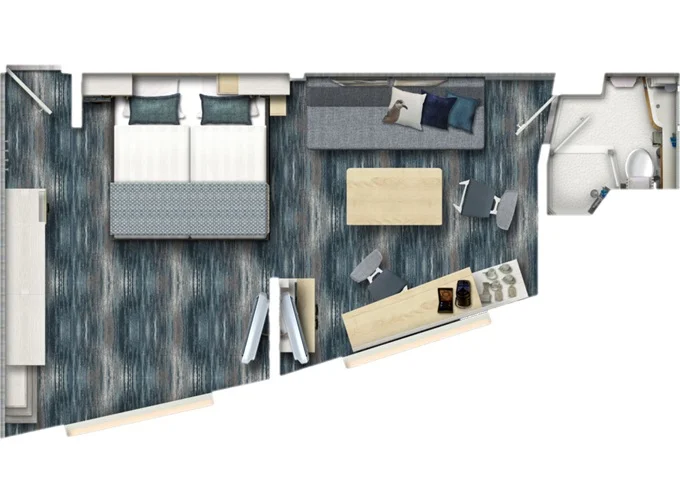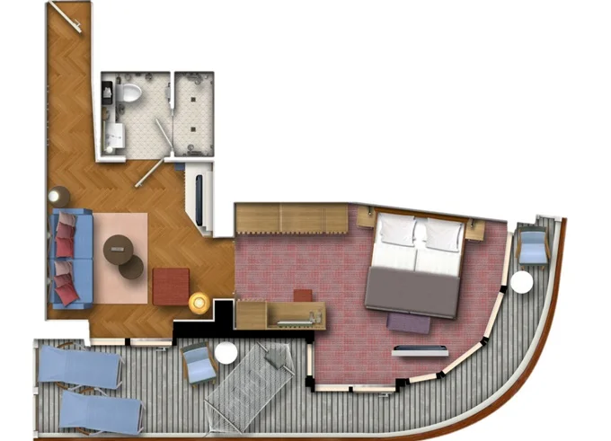| JBAO - Junior Suite s balkonem 26 m² + balkon 7 m² se stolem. . paluba. Max 4 osoby. Výhody Junior Suite. | 180 521 Kč 180 521 Kč za osobu | ||