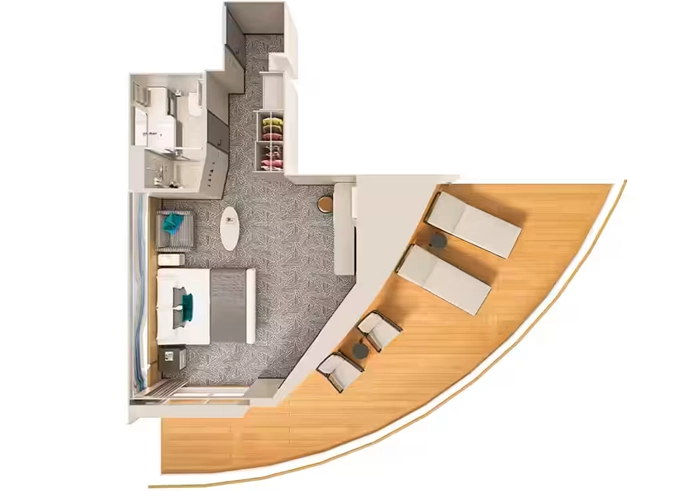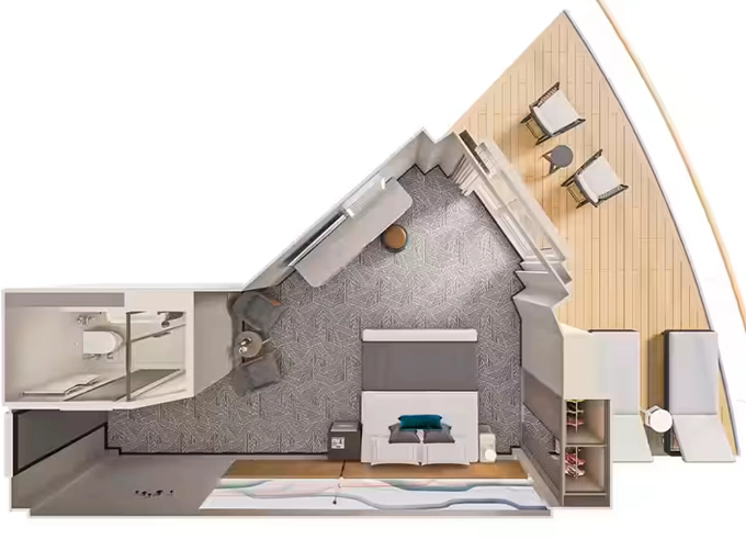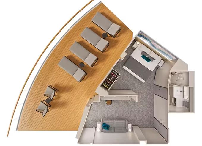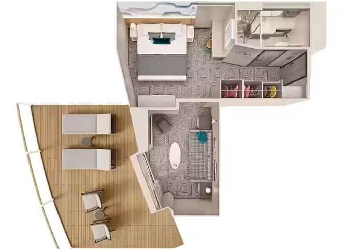 | H5 - Apartmá The Haven Owner's Suite s velkým balkónem 40-45 m² / balkón 10-12 m². 12. paluba, Max 4 osoby. Výhody The Haven | 370 942 Kč 185 471 Kč za osobu | ||