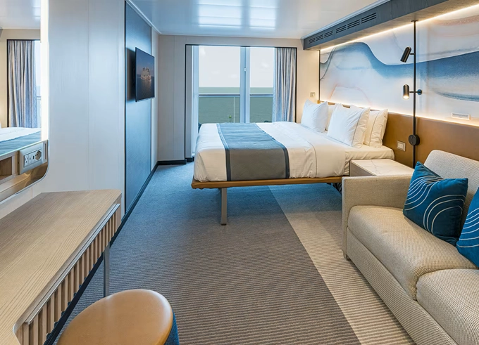 | MB - Club Suite s balkonem, přední výhled 22 - 25 m² / balkon 7 m². 9. až 13. paluba - příď. Max 2 osoby. Výhody Club. | 137 347 Kč 68 674 Kč za osobu | ||