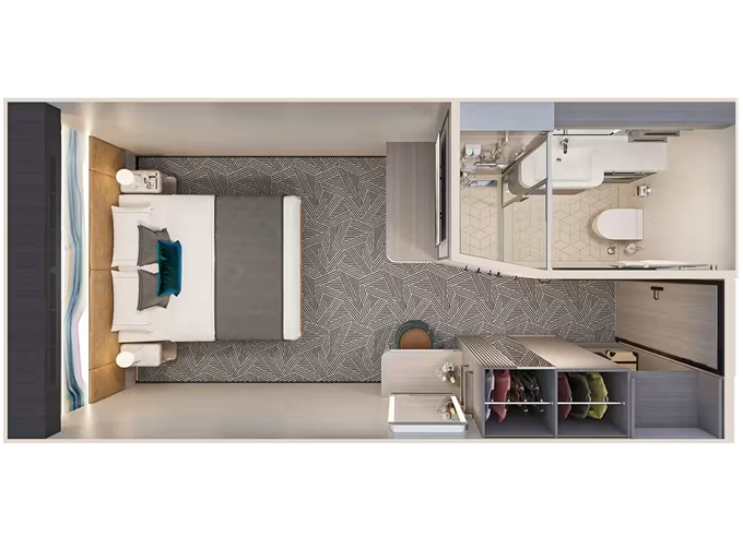 | IB - Kajuta vnitřní 15 m². 9-11. paluba. Max 2 osoby. | 78 384 Kč 39 192 Kč za osobu | ||